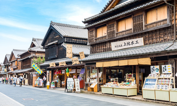 名物の伊勢うどんや赤福餅、地元の特産品が楽しめ、食べ歩きやお土産選びに最適。風情ある街並みが魅力です。